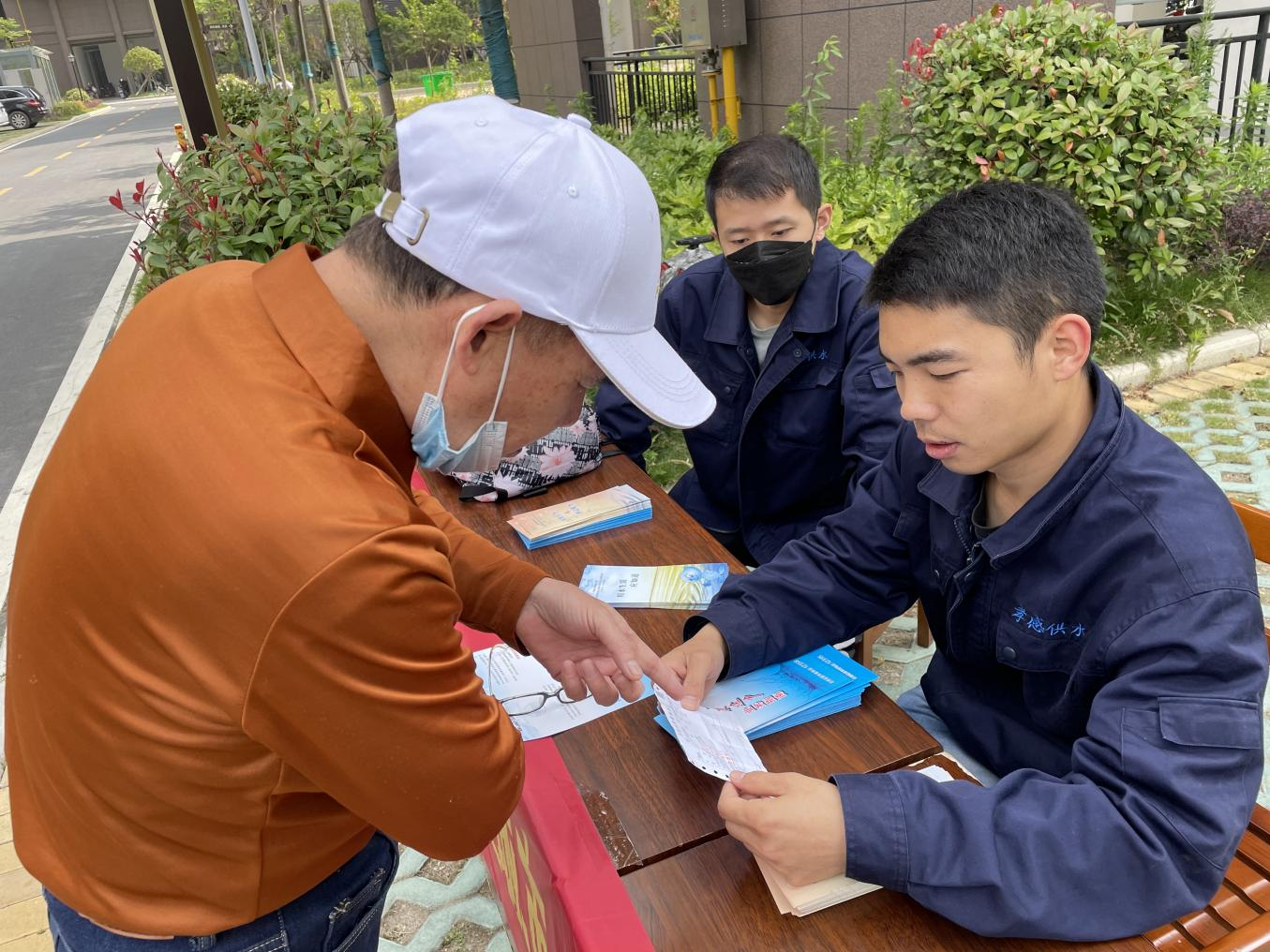 5月18日上午,公司在文昌閣社區(qū)開展以“建設(shè)節(jié)水城市,推動綠色低碳發(fā)展”為主題的節(jié)約用水宣傳活動?;顒蝇F(xiàn)場,通過設(shè)置宣傳展臺、拉橫幅、發(fā)放節(jié)水手冊、宣傳單等方式,向用戶普及生活節(jié)水技巧,還義務(wù)到用戶家中查看水表、水管等等供水設(shè)施有無故障,居民們對此紛紛稱贊。