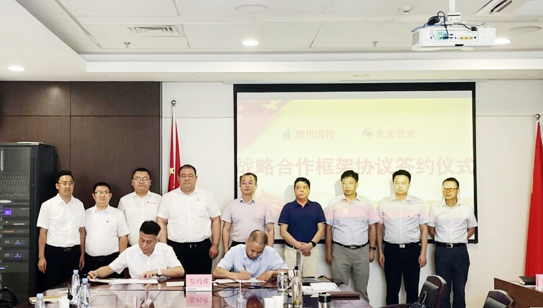 6月28日,公司與山東東宏管業(yè)簽署戰(zhàn)略合作框架協(xié)議,發(fā)揮各自優(yōu)勢進行產(chǎn)業(yè)鏈招商、水務(wù)水利項目合作。東宏管業(yè)副董事長、總裁倪奉堯,澴川國投總經(jīng)理陳情出席簽約儀式并講話。