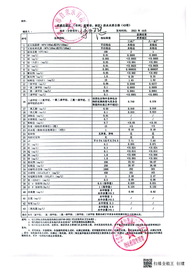 2023年10月水質(zhì)報告