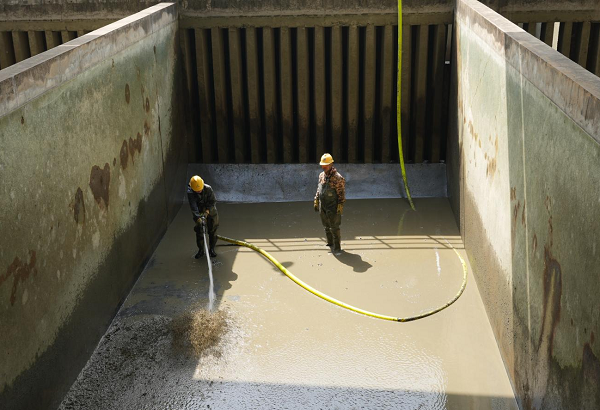 平流池作為水處理核心設(shè)施,長(zhǎng)期截留原水中的泥沙、藻類及重金屬顆粒。若未定期清理沉積物可能滋生微生物,甚至釋放二次污染物,池底淤積也會(huì)改變?cè)O(shè)計(jì)水流形態(tài),影響絮凝體沉降效率。此次清洗工作可恢復(fù)池體過(guò)水?dāng)嗝?,不僅能有效預(yù)防二次污染、減輕濾池負(fù)荷,還可降低水處理藥劑成本,助力水處理工藝穩(wěn)定運(yùn)行,保障優(yōu)質(zhì)的出廠水水質(zhì)。