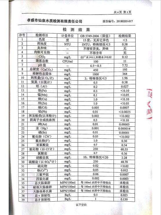 2018年2月水質(zhì)報(bào)告