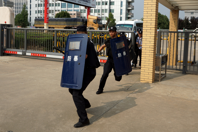 5月17日15時(shí)30分,一來(lái)歷不明的“暴恐分子”突然闖入我公司三水廠廠區(qū),意圖持刀“行兇”;水廠保安人員迅速報(bào)警,并利用防暴器械與其周旋。隨后公安特勤人員快速趕到現(xiàn)場(chǎng),一舉將“暴恐分子”包圍制服,果斷處置了一場(chǎng)突發(fā)“暴恐”事件。