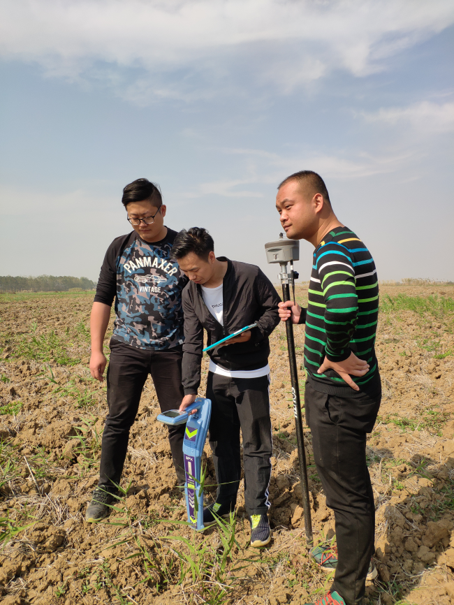 這一天的測量工作一直忙到下午4點(diǎn)才收工,算下來每個(gè)人都步行了上十公里。小伙子們的臉上雖然也是一臉灰塵和疲憊,但望著插滿彩旗的田野,大家踏著夕陽而返時(shí),神情和話語里洋溢著掩不住的歡欣。