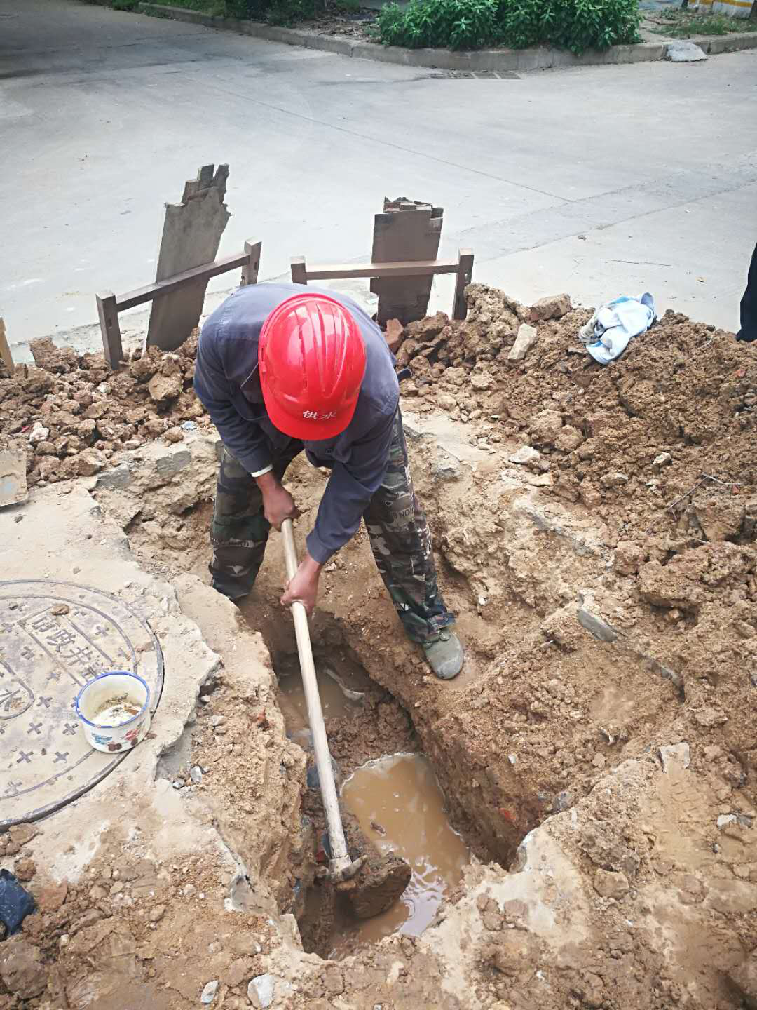 據(jù)了解,兵工花園小區(qū)于去年10月開(kāi)始進(jìn)行“三供一業(yè)”管道改造,5月13日上午,我公司管安部門(mén)組織驗(yàn)收時(shí)發(fā)現(xiàn),該小區(qū)供水管網(wǎng)存在漏水現(xiàn)象。經(jīng)工作人員初步檢查,懷疑是小區(qū)內(nèi)部自有管道存在漏點(diǎn),后經(jīng)定點(diǎn)查勘,確認(rèn)為是小區(qū)內(nèi)部PE110轉(zhuǎn)63管道預(yù)留口堵板處漏水。此前,應(yīng)小區(qū)業(yè)主要求,我公司進(jìn)行“三供一業(yè)”管網(wǎng)改造時(shí),對(duì)該小區(qū)部分原有供水管道予以保留。此次驗(yàn)收試壓發(fā)現(xiàn)小區(qū)部分自有管道存在老化破損漏水現(xiàn)象。按規(guī)定,這種情況應(yīng)由小區(qū)自行處理,秉著為人民服務(wù)的理念,我公司主動(dòng)承擔(dān)社會(huì)責(zé)任,根據(jù)現(xiàn)場(chǎng)的管道漏水情況,制定維修方案。對(duì)漏水點(diǎn)開(kāi)挖、抽排水、更換墊片、封堵漏點(diǎn),經(jīng)過(guò)了3個(gè)多小時(shí)的緊急維修,最終圓滿的解決了該小區(qū)管道漏水問(wèn)題。