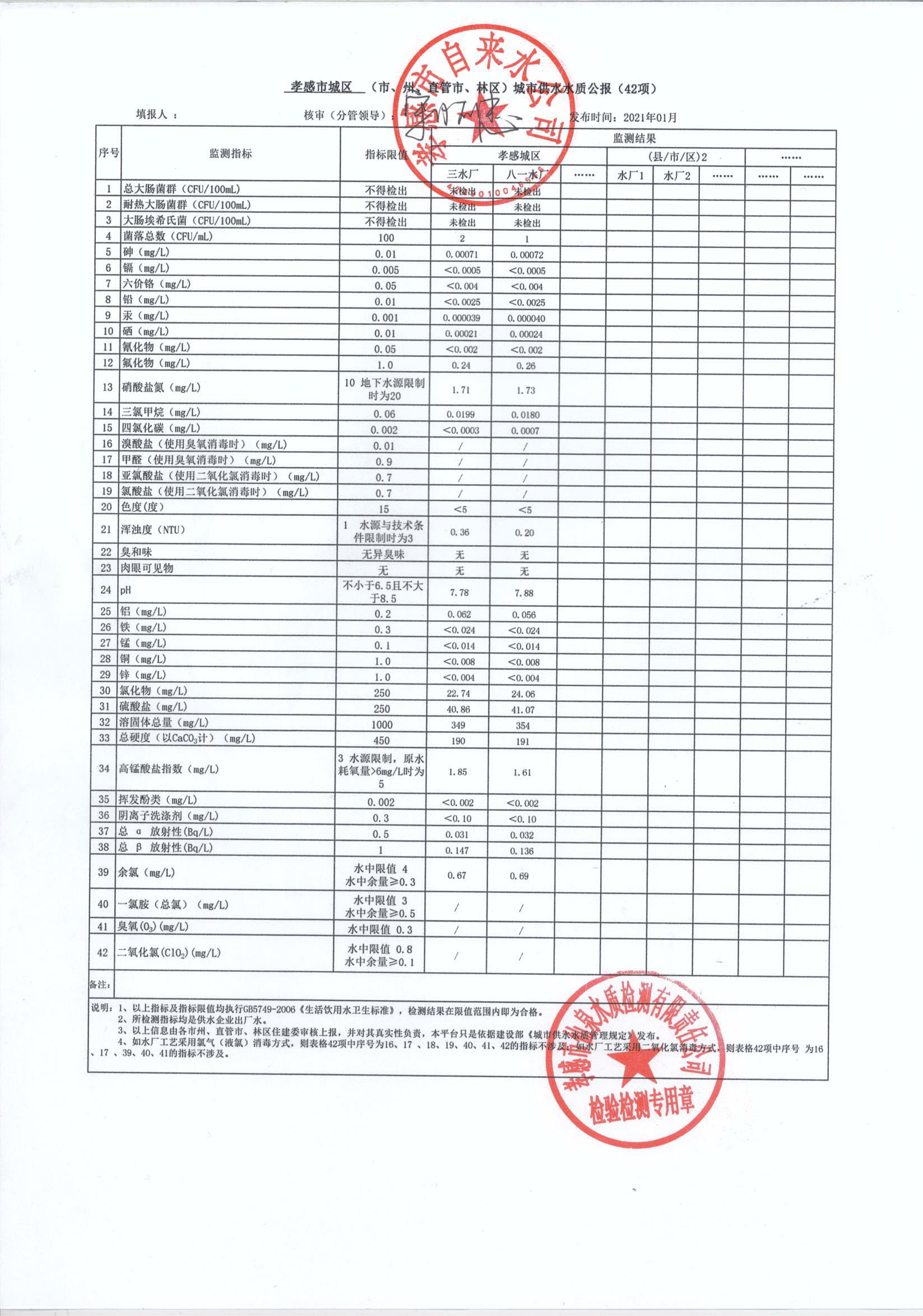 2021年1月水質(zhì)報告